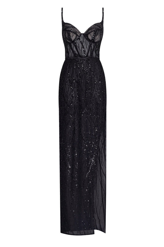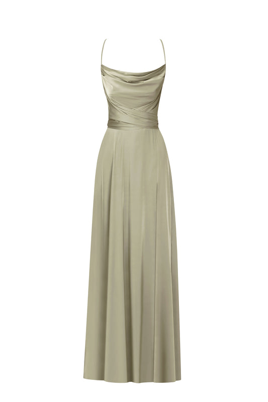 Bizzare fully sequined tie-straps gold maxi dress, Smoky Quartz
