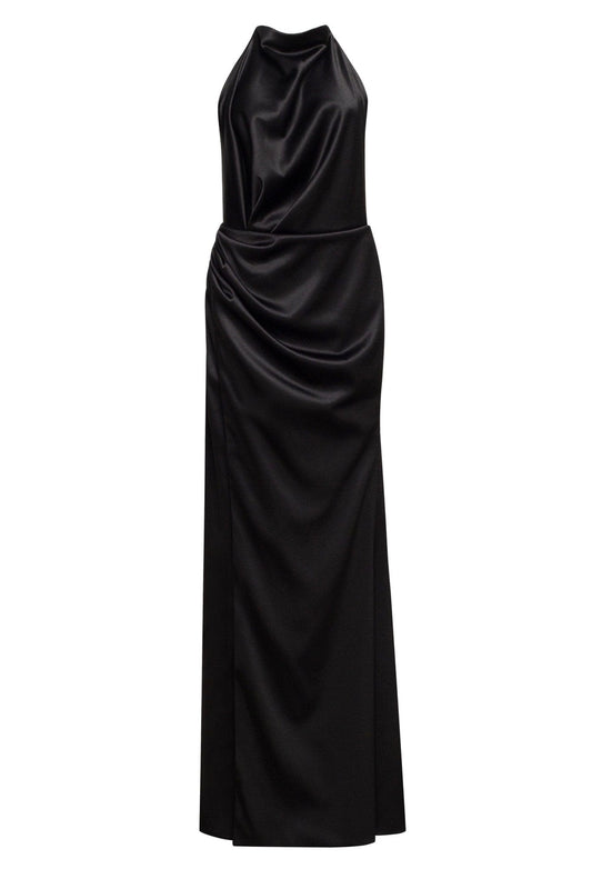 WyprzedaneBlack Mock neck sleeveless low slit dress