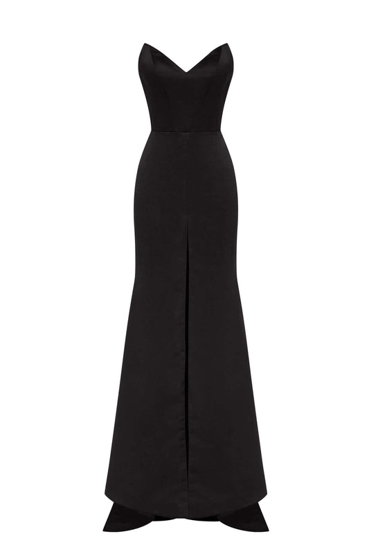 WyprzedaneBlack Strapless evening gown with thigh slit