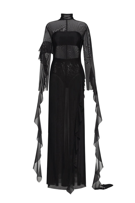WyprzedaneBlack Ruffled Tulle Midi Dress
